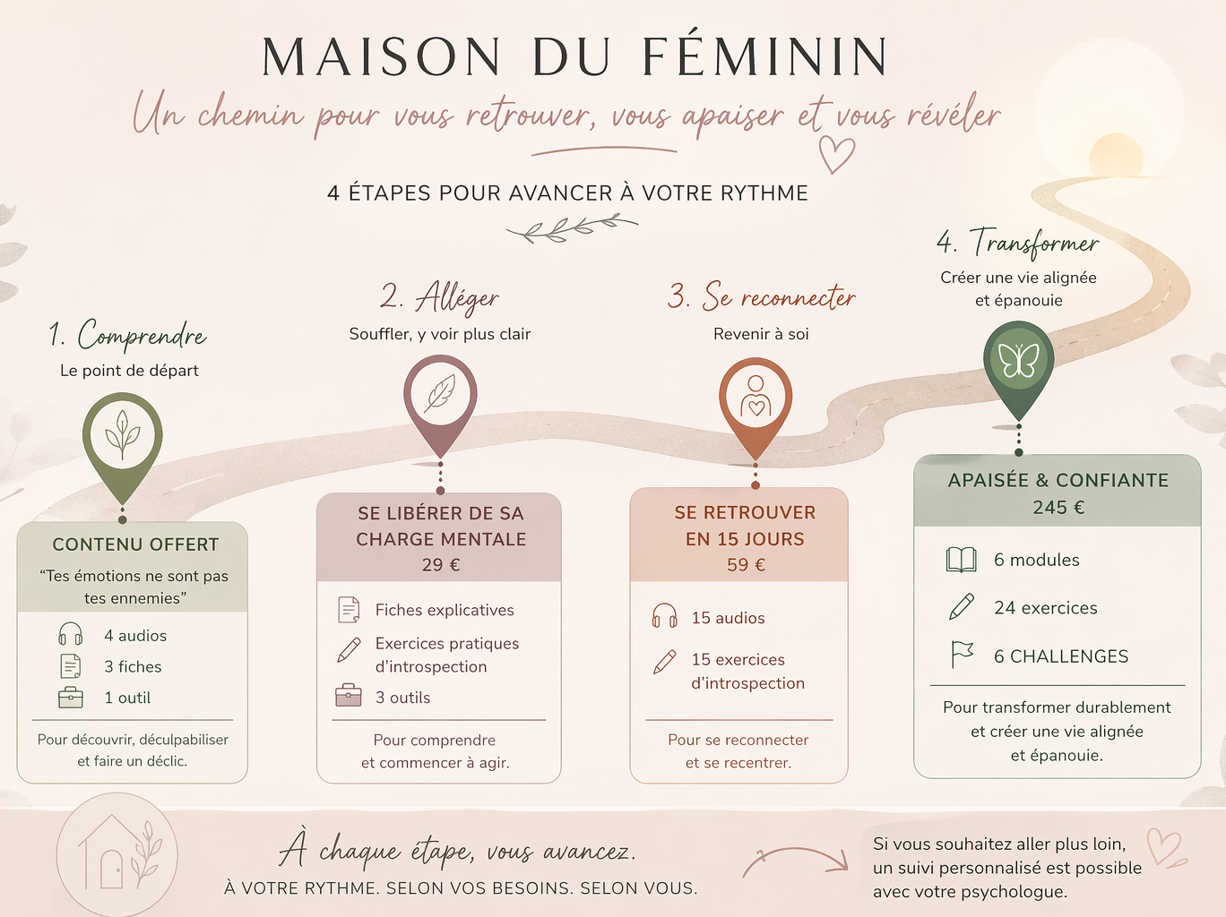 Oui, totalement. Maison du Féminin est justement pensé comme un chemin. Vous pouvez commencer par l’espace gratuit, puis avancer étape par étape.